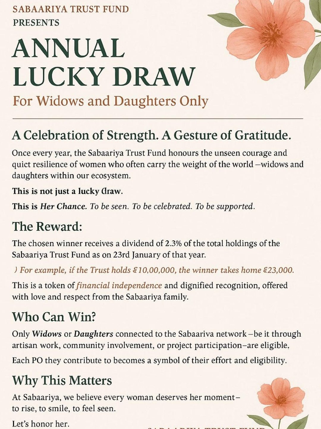 Sabaariya Kaur Trust Fund gives out once a year a dividend amount of 2.3% to all stakeholders in it’s ecosystem